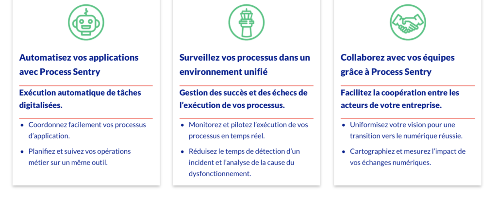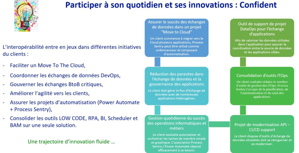 Au travers de trois piliers fonctionnels (l’automatisation, le monitoring et la collaboration Métier / IT), la solution permet aux entreprises souvent abandonnées par les grands éditeurs d’assurer la maitrise de leurs échanges de données et flux intra et inter-entreprises pour continuer d’innover sereinement avec le digital et aux décideurs IT de dormir sur leurs deux oreilles.